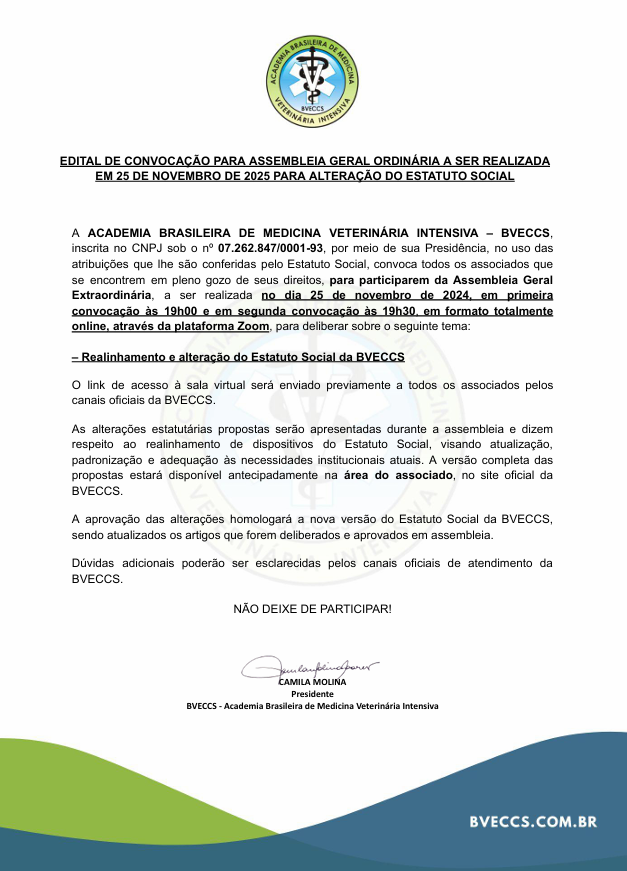 Tudo começou em agosto de 2003 em Belo Horizonte, quando um grupo de médicos veterinários funda a BVECCS (Brazilian Veterinary Emergency and Critical Care Society) – Academia Brasileira de Medicina Intensiva Veterinária – uma ramificação da entidade norte-americana que deu origem à sigla (VECCS – Veterinary Emergency and Critical Care Society) e que também congrega o grupo de intensivistas veterinários europeus (EVECCS – European Veterinary Emergency and Critical Society).